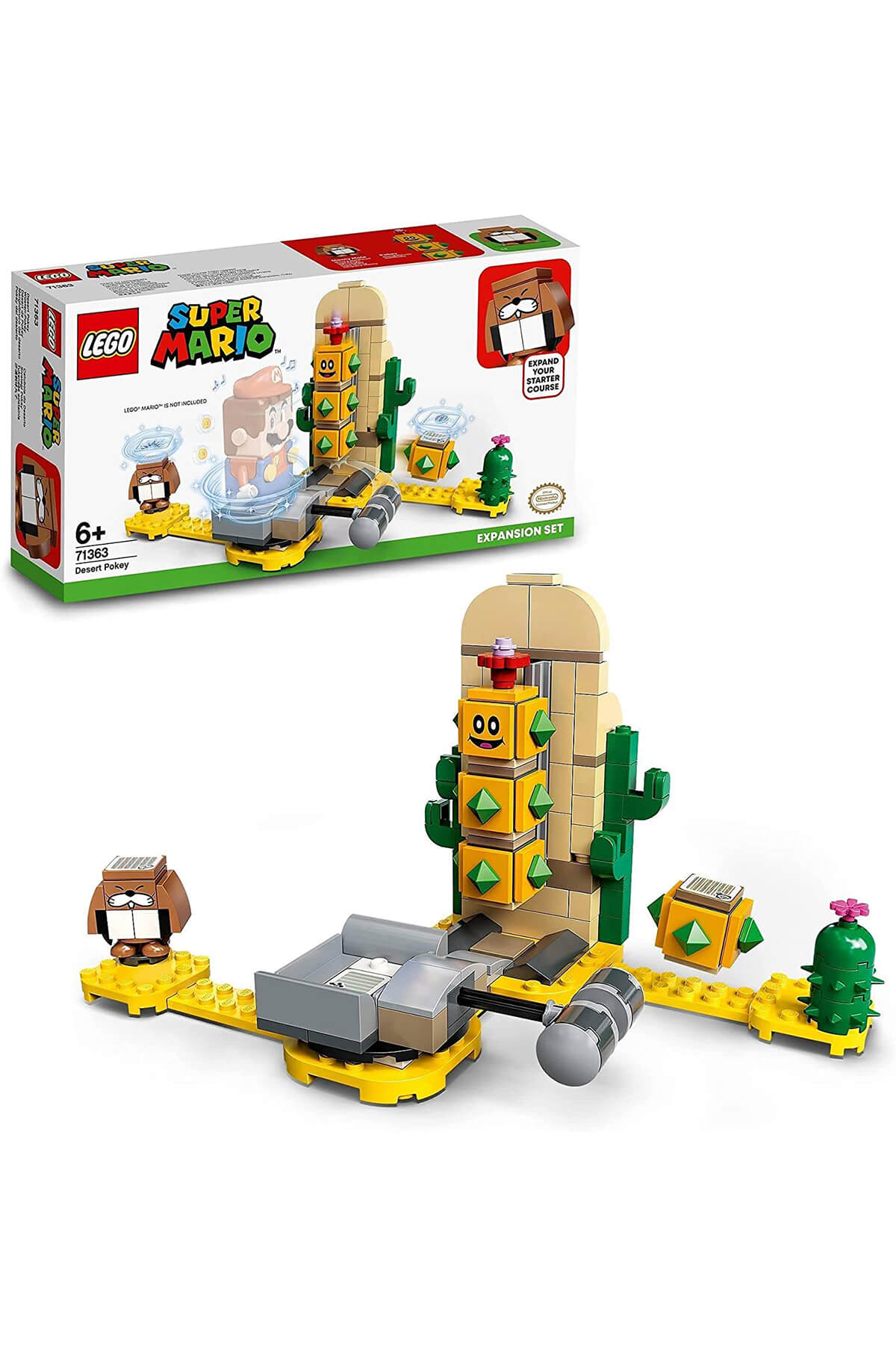 Çocuklar LEGO Super Mario ile Maceraya Başlangıç Seti'ne heyecan verici bir çekiç sallama aksiyonu katabilir ve bu eğlence dolu Çöl Pokey Ek Macera Setiyle (71363) arkadaşlarına karşı yarışabilir. Bu sette LEGO Mario’nun (figür dahil değildir) kaktüse benzeyen, parçalarla yapılan Pokey figürünü bölüm bölüm yıkmakta kullandığı çekiçli bir dönen platform, ayrıca yenerek daha da fazla ödül kazanabileceğiniz bir Monty Mole figürü bulunur. LEGO Mario (figür dahil değildir) dönen çekiçli platforma koyulduğunda müzik çalar ve bu çocuk yapım setindeki 3 fonksiyon parçası, LEGO Mario üzerinden atladığında farklı şekillerde tepki verir. Bu yaratıcı 180 parçalı LEGO oyun seti, Mario ile Maceraya Başlangıç Seti'ne sahip 6 yaş ve üzeri çocuklar için eğlenceli bir doğum günü ya da yılbaşı hediyesidir, onları kendi benzersiz seviyelerini yapmaya ve kişiselleştirmeye teşvik eder. Temel biçiminde yüksekliği 12 cm, genişliği 21 cm ve derinliği 12 cm olan bu modül, yeniden yapılabilir ve Maceraya Başlangıç Seti ve diğer LEGO Super Mario Ek Macera Setleriyle çok farklı şekillerde birleştirilebilir.Bu ürün belirli güvenlik uyarılarına tabidir.